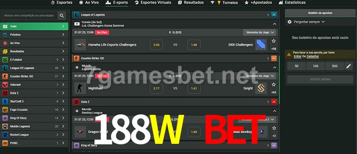 O 188W Bet oferece uma grande seleção de opções de apostas em e-sports com probabilidades competitivas